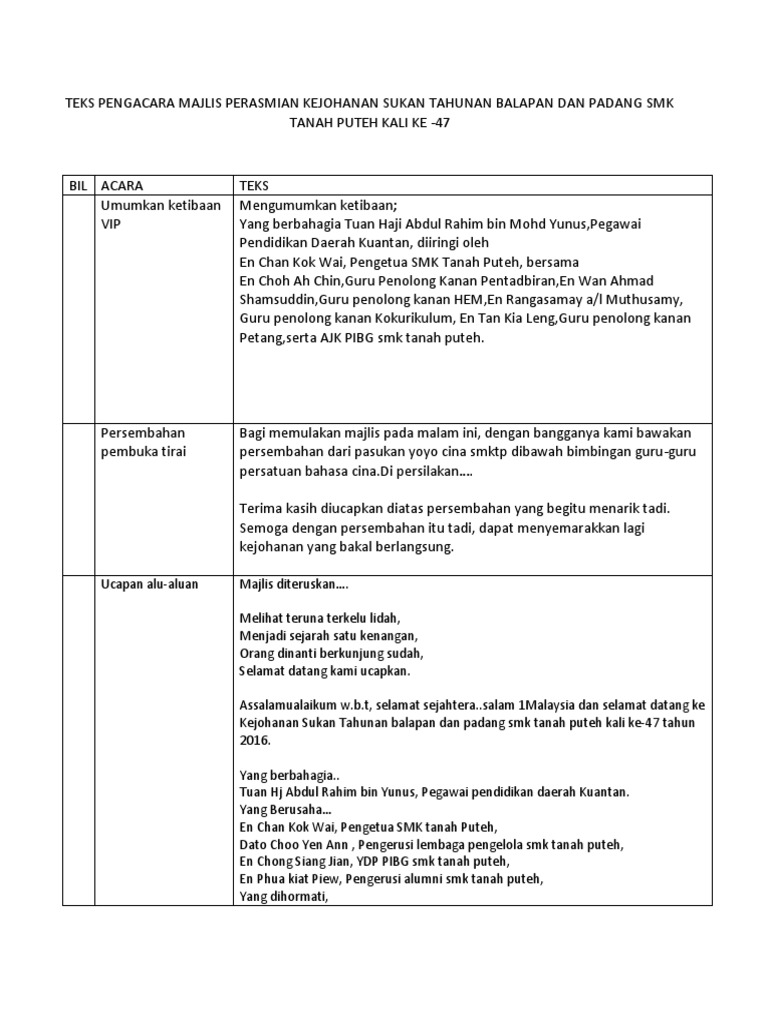 AJK-AJK PIBG yang hadir pada hari ini serta murid-murid Sek. Contoh Bacaan Teks Pengacara Majlis credit to. Teks Ucapan Hari Sukan.